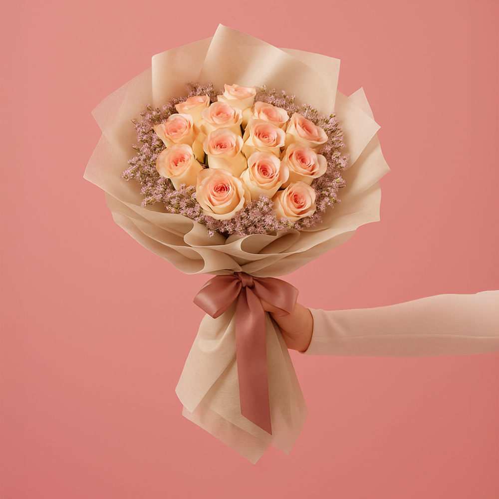 باقة ازهار جميلة بدرجات الباستيل الهادئة سوف تنثر الفرح في كل مكان وتضفي لمسة من الأنوثة الراقية لآن تصميمها الناعم يعكس مشاعر الحب والهدوء مثالية لكل لحظة خاصة تجعلها أكثر تميزًا وجمالًا.
