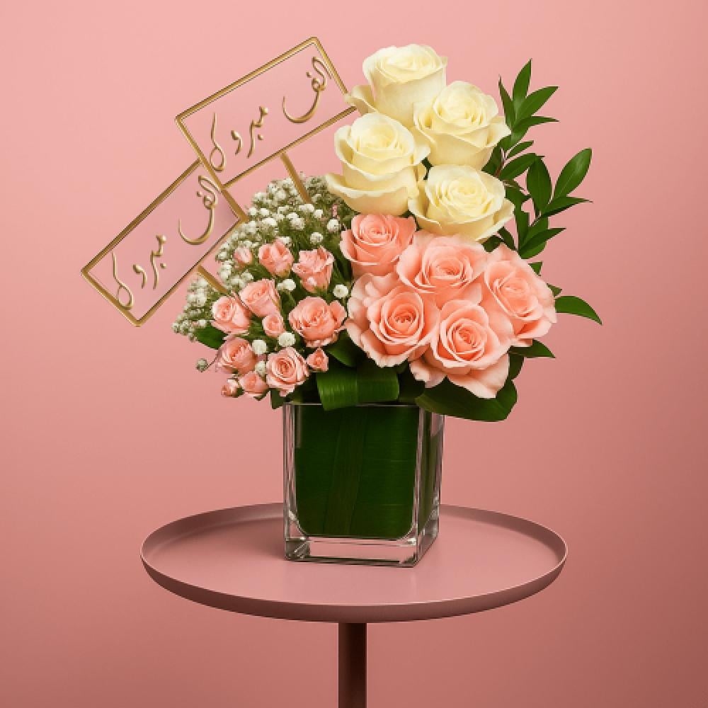 فازة ورد هدية مع الجوري والبيبي روز حيث تجمع بين الجمال والأناقة وكل زهرة فيها تعكس حبك العميق.. هدية مثالية لأغلى شخص وتترك أثر لا يُنسى.
